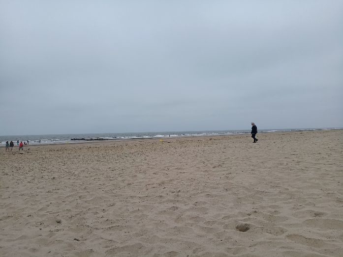 At the sea, looks like belgian weather.